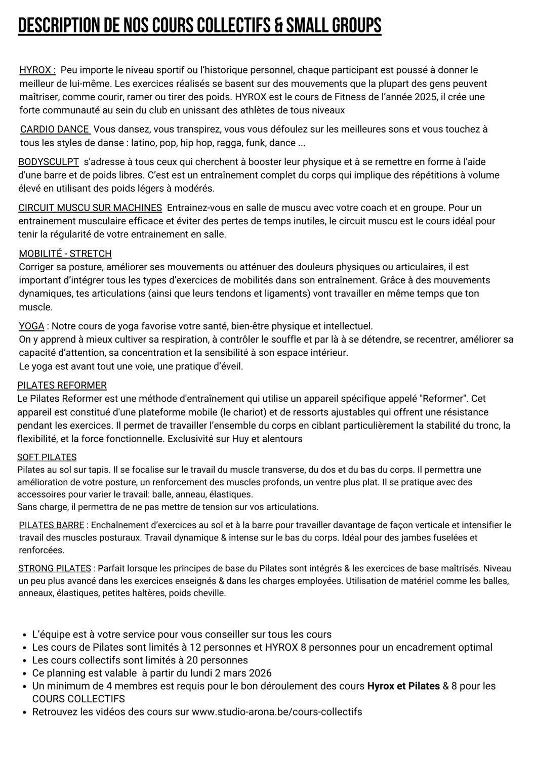 Les cours collectifs – Studio Arona