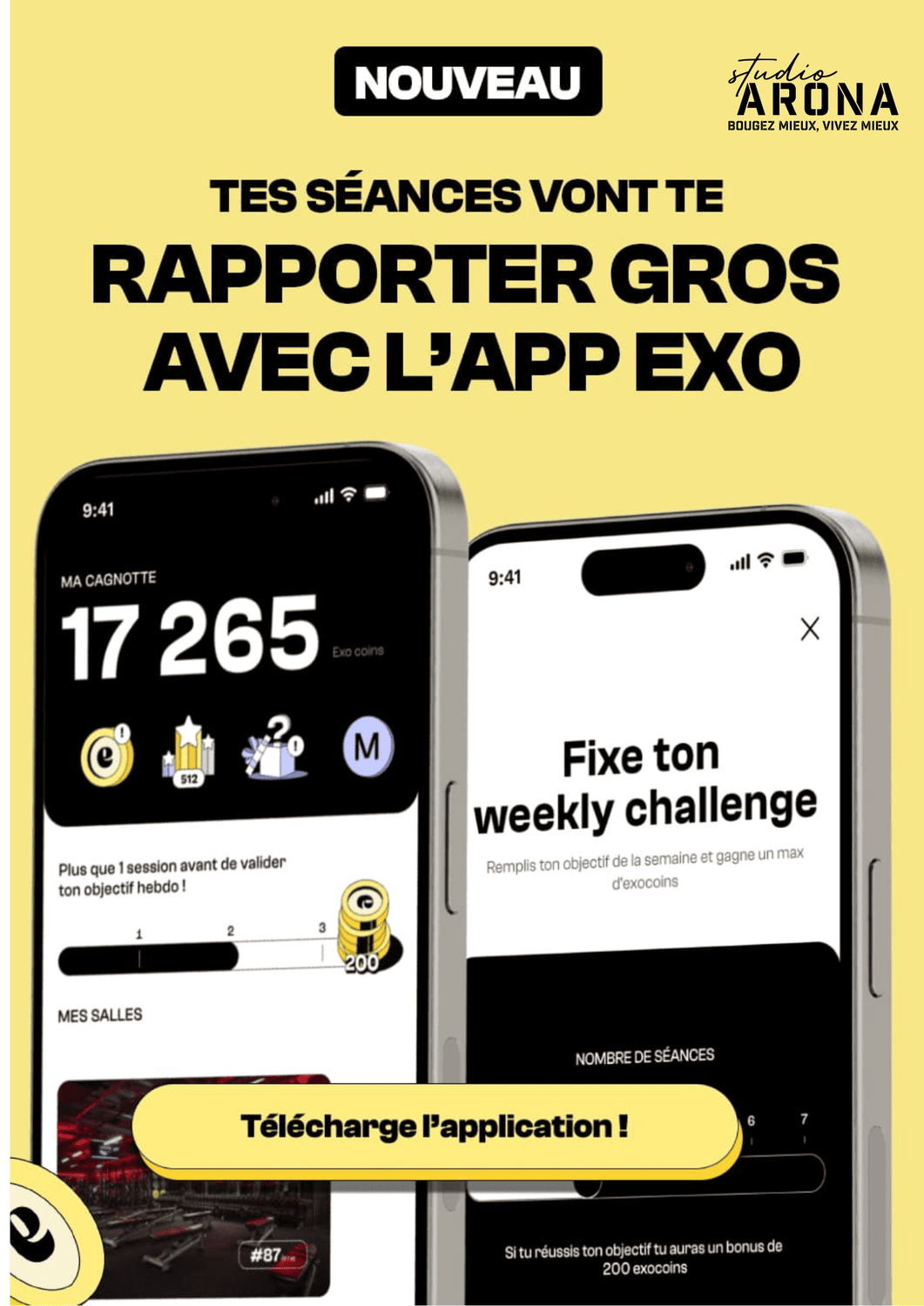 Studio Arona s’associe à Exo Sport, l’application qui récompense vos séances de fitness et de danse et vous motive à rester actif.